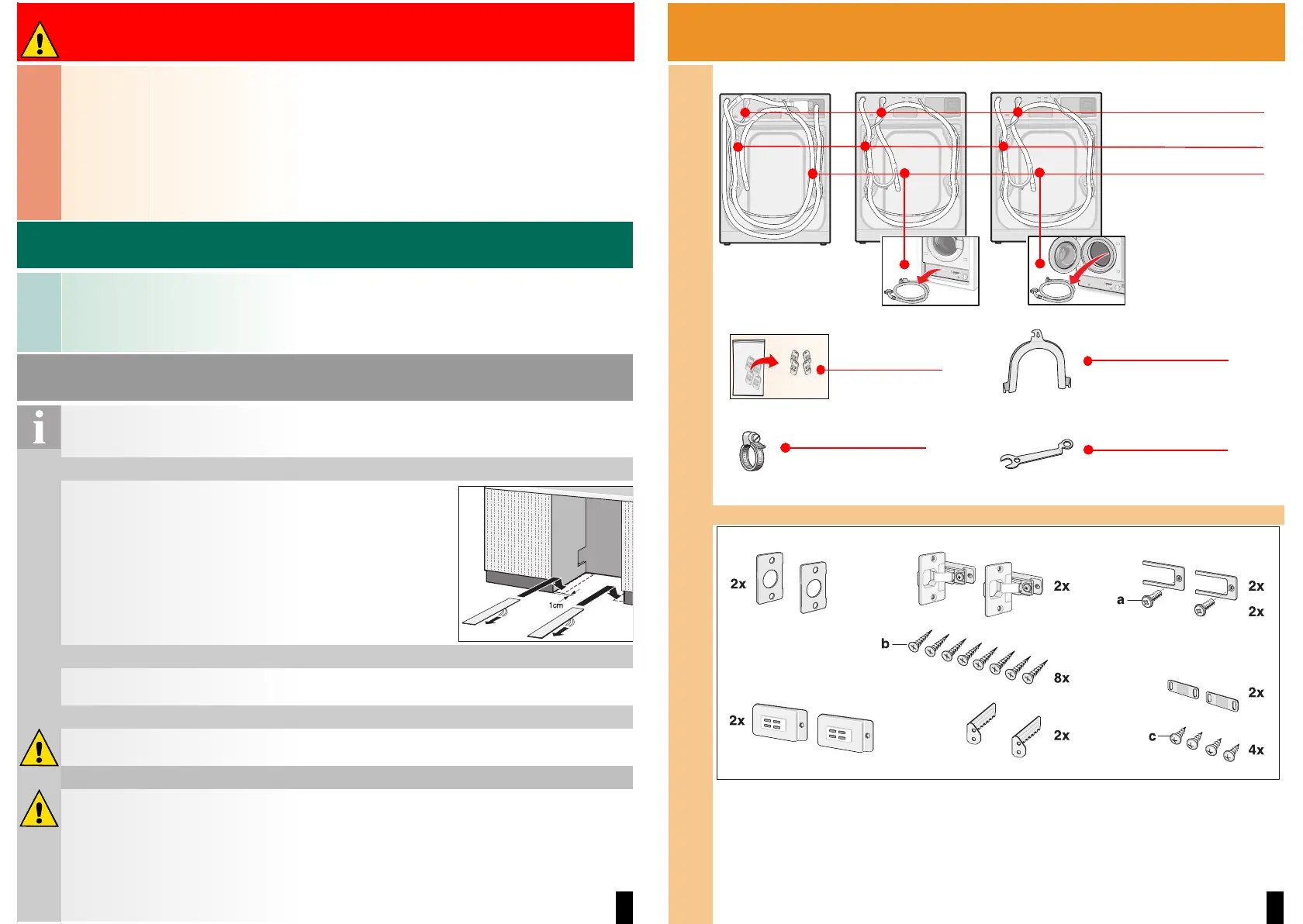 The washing machine could be damaged. Do not lift the appliance by protruding