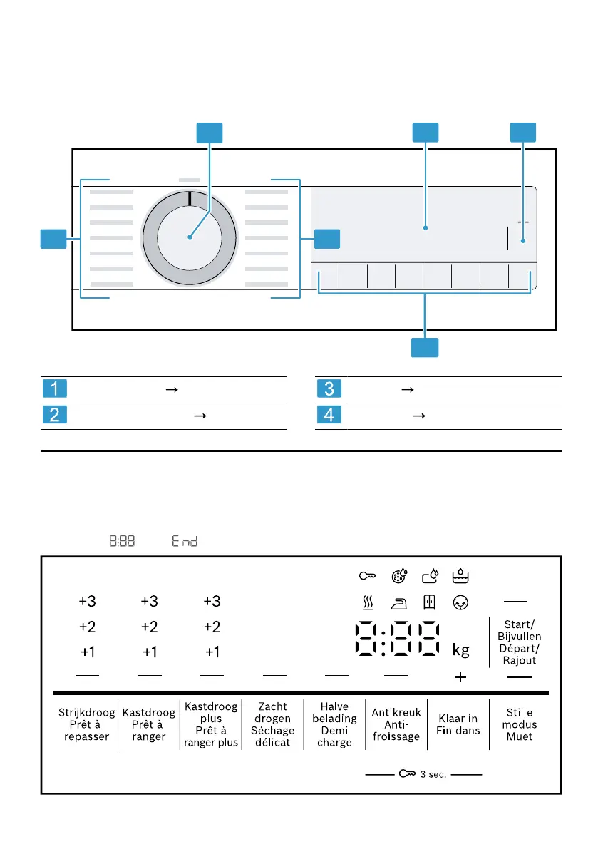 Op het display ziet u de actuele instelwaarden, keuzemogelijkheden of aanwij-
