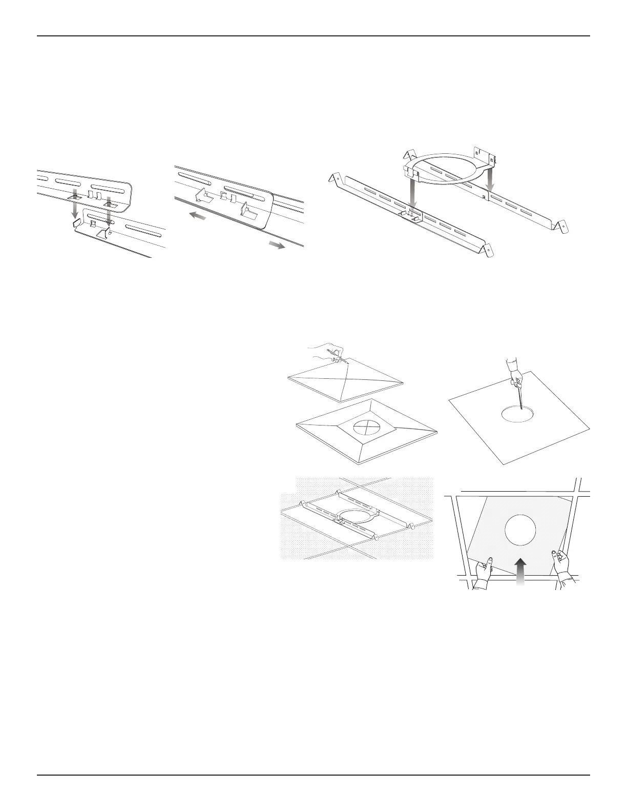 Opmerking: Bij installatie in een hard plafond monteert u de tegelbrug nadat u de rails en ring door de opening hebt