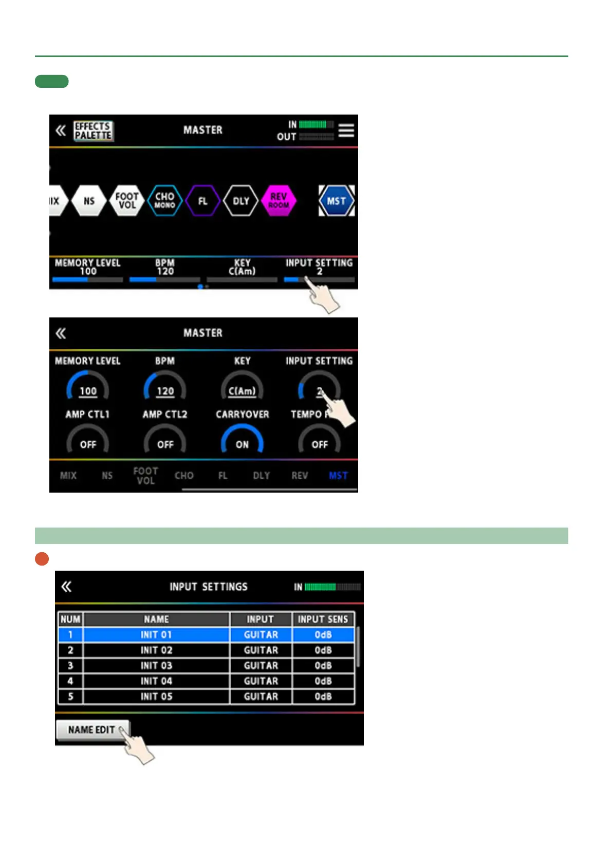 ¹ You can select INPUT SETTINGS for each memory. Select 1–10 or SYSTEM in the INPUT SETTING of MASTER for the last component in the effect