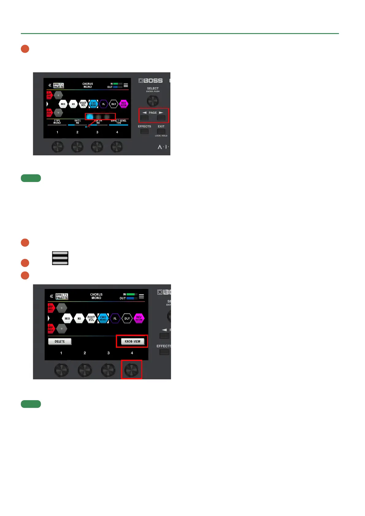 You can also display the edit screen (KNOB VIEW) by touching the icon of the effect you want to edit in step 1, and then long-pressing the [SELECT]