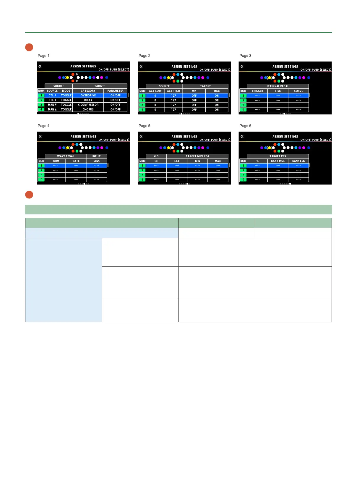 5 Use the [1]–[4] knobs to select parameters or edit the values. Switch between pages using the PAGE [Í] [Ë] buttons.