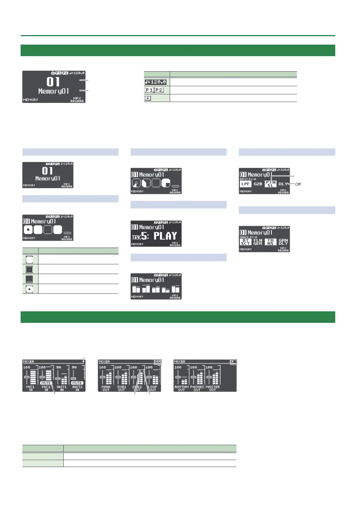 Press the [ENTER] button while the play screen is shown to display the MIXER screen, where you can check the input/output levels for each