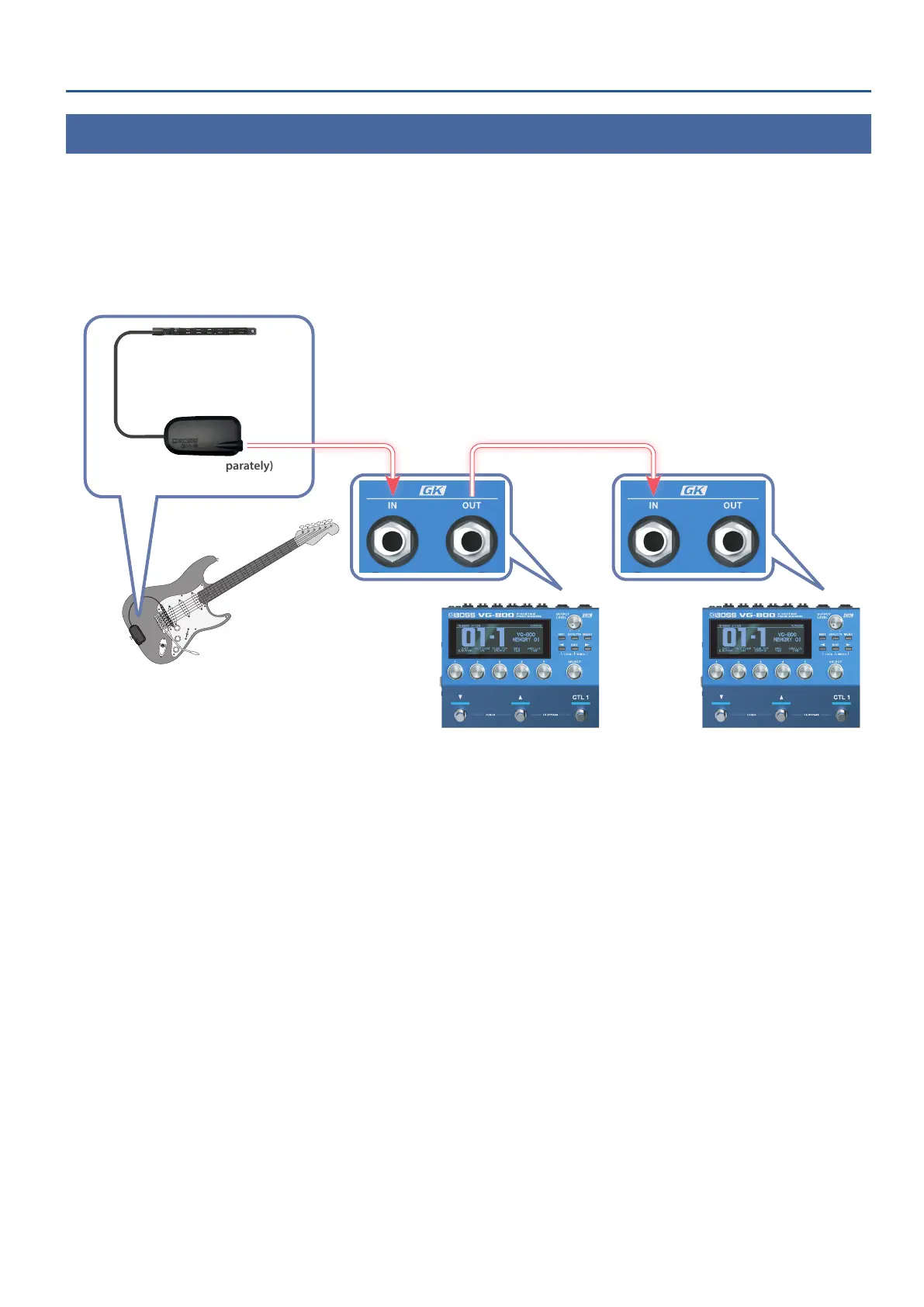 The divided pickup signal that’s input to the GK IN jack of the rst unit is sent to the GK IN jack of the second unit. You can also send the sounds