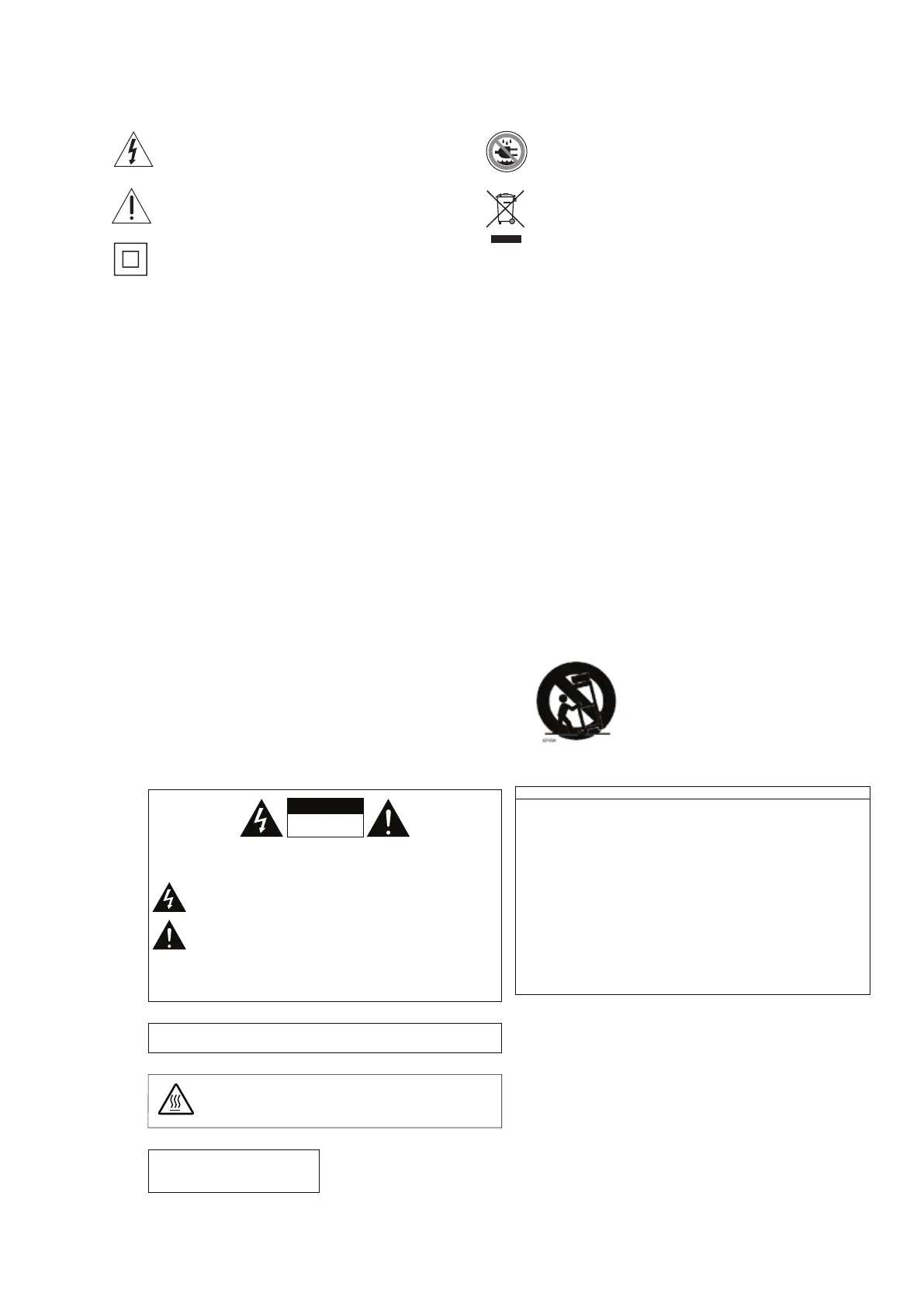等边三角形中有箭头闪电标号的图形表示警告使用者在产品内有非绝缘的“危险电压”,可能会对人体造