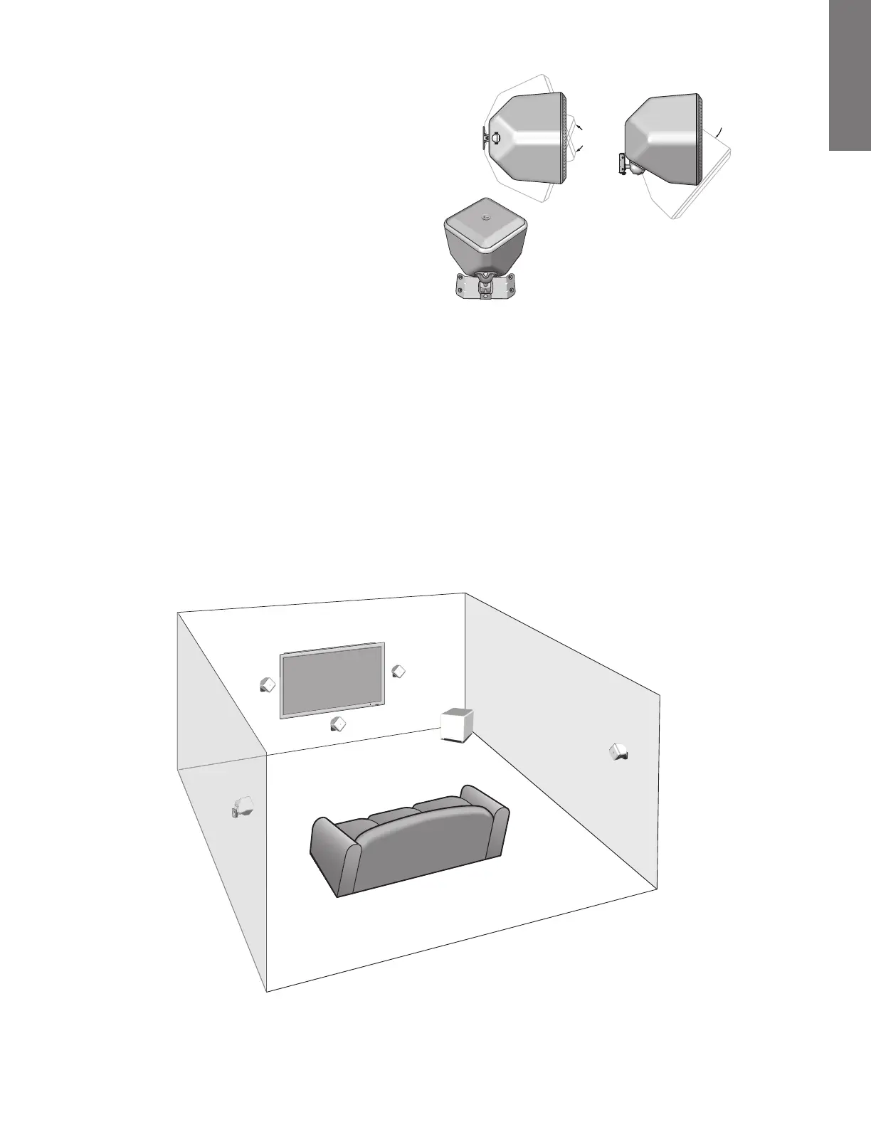 komma från huvudhögtalarna. Experimentering är nyckeln men de flesta placeringar i rummet fungerar bra.