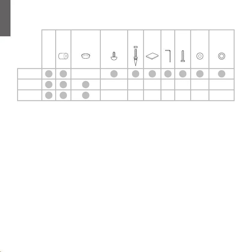 Die obige Tabelle zeigt die mitgelieferten Einzelteile für das