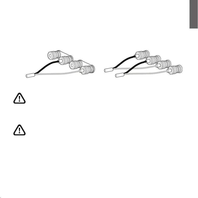 接,并将每对端子连接到功放。对于双线连接或双功放(右上图),