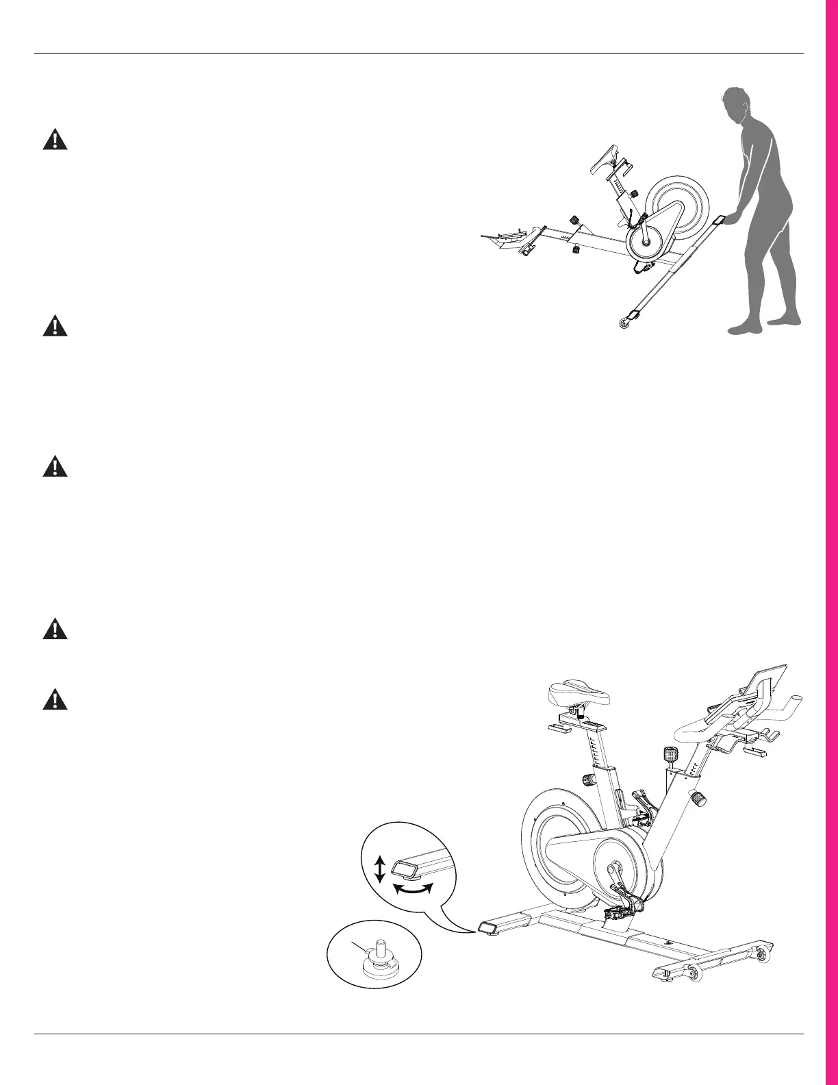 The machine needs to be leveled if your workout area is uneven. Levelers are found on each side of the stabilizers. Lift the stabilizer slightly