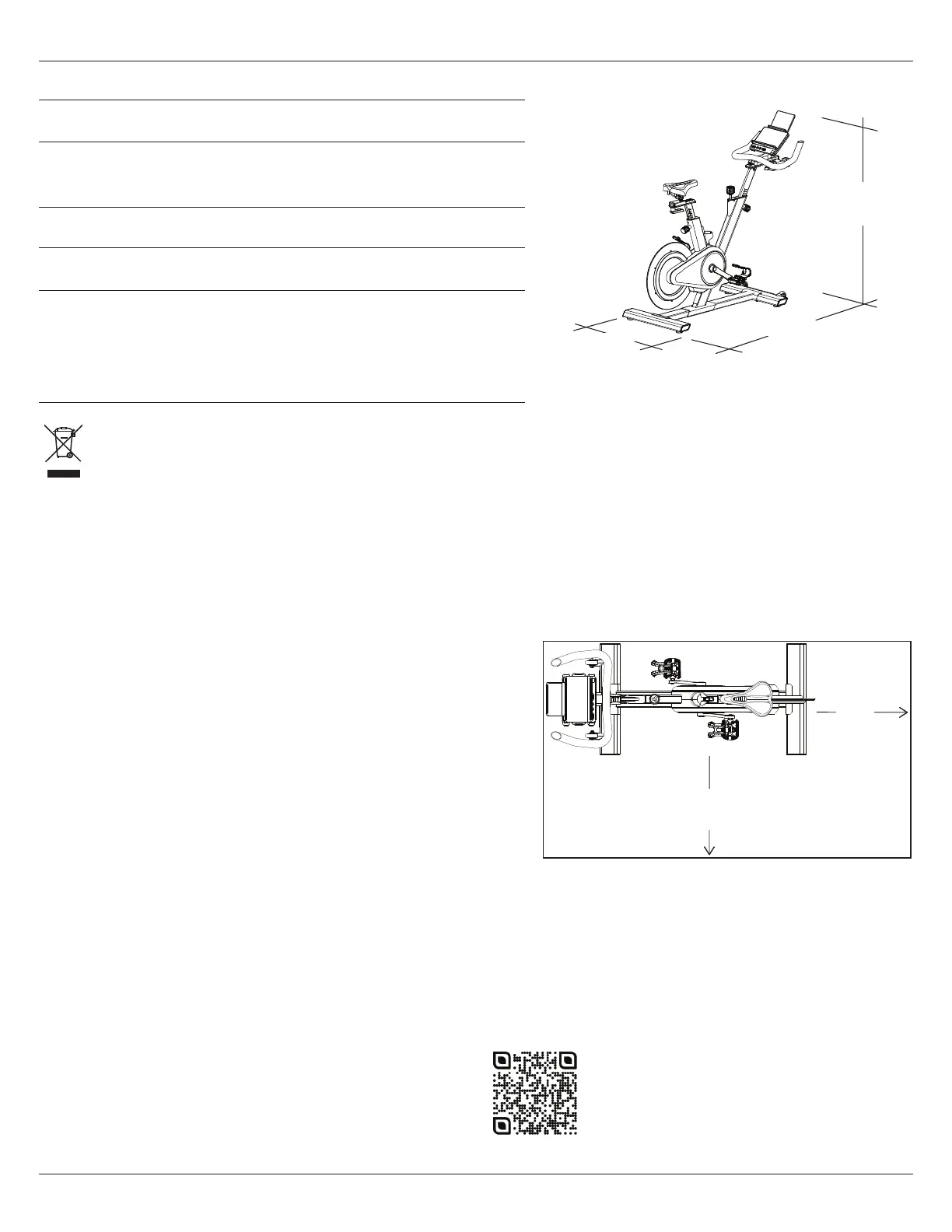 Keep the workout area clear 0.6 m (24 in) along the side used to access the machine and to the rear of the machine. We recommend
