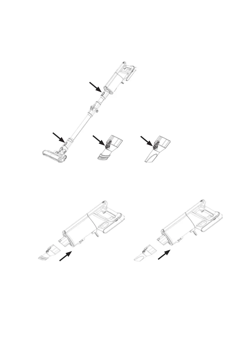 3. Fixez l’accessoire de nettoyage souhaité sur le boîtier de l’aspirateur,