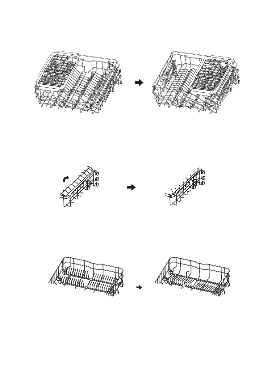To make room for taller items in the upper basket, raise the cup rack upwards.