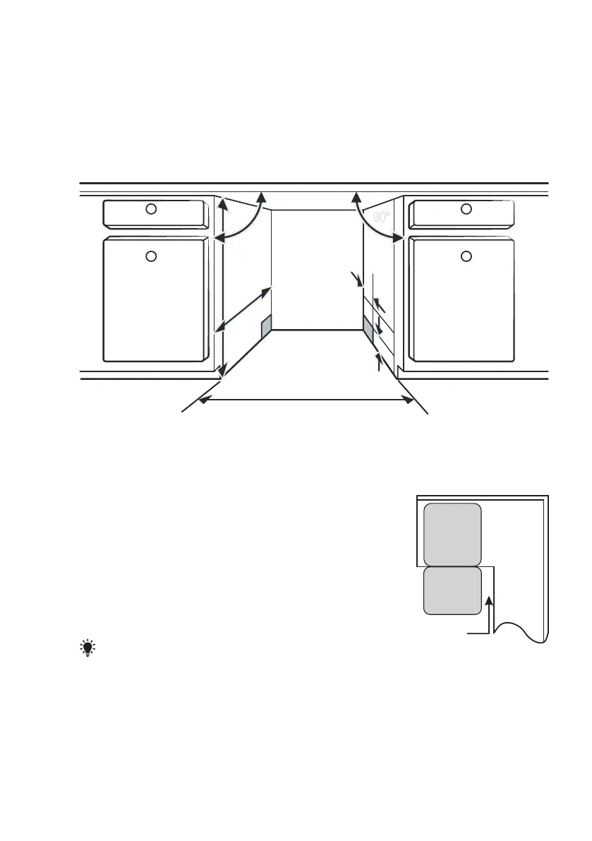 1. Less than 5 mm between the top of dishwasher and cabinet and the outer door