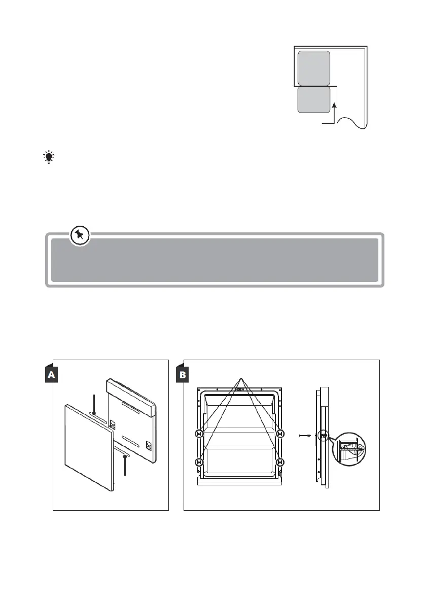 d’habillage en bois et la face B feutrée sur la porte extérieure du lave-vaisselle (cf.