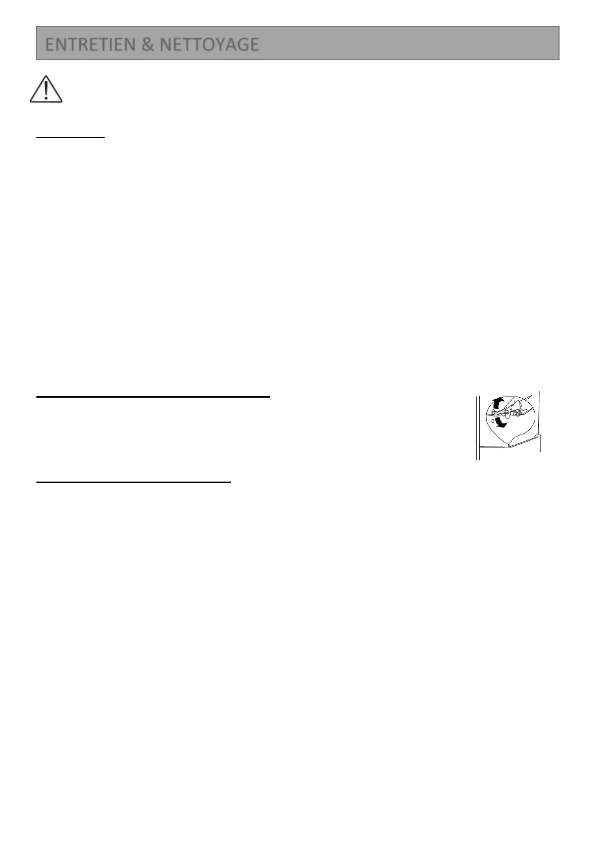 Avertissement ! Avant toute opération d'entretien, débranchez votre appareil. Ne