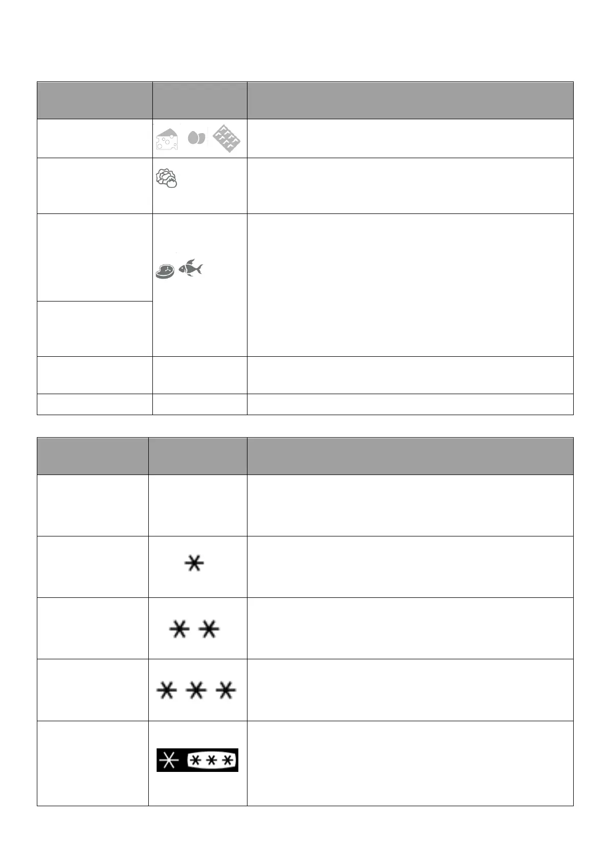 o Ranger les aliments aux emplacements préconisés dans les tableaux ci-après.