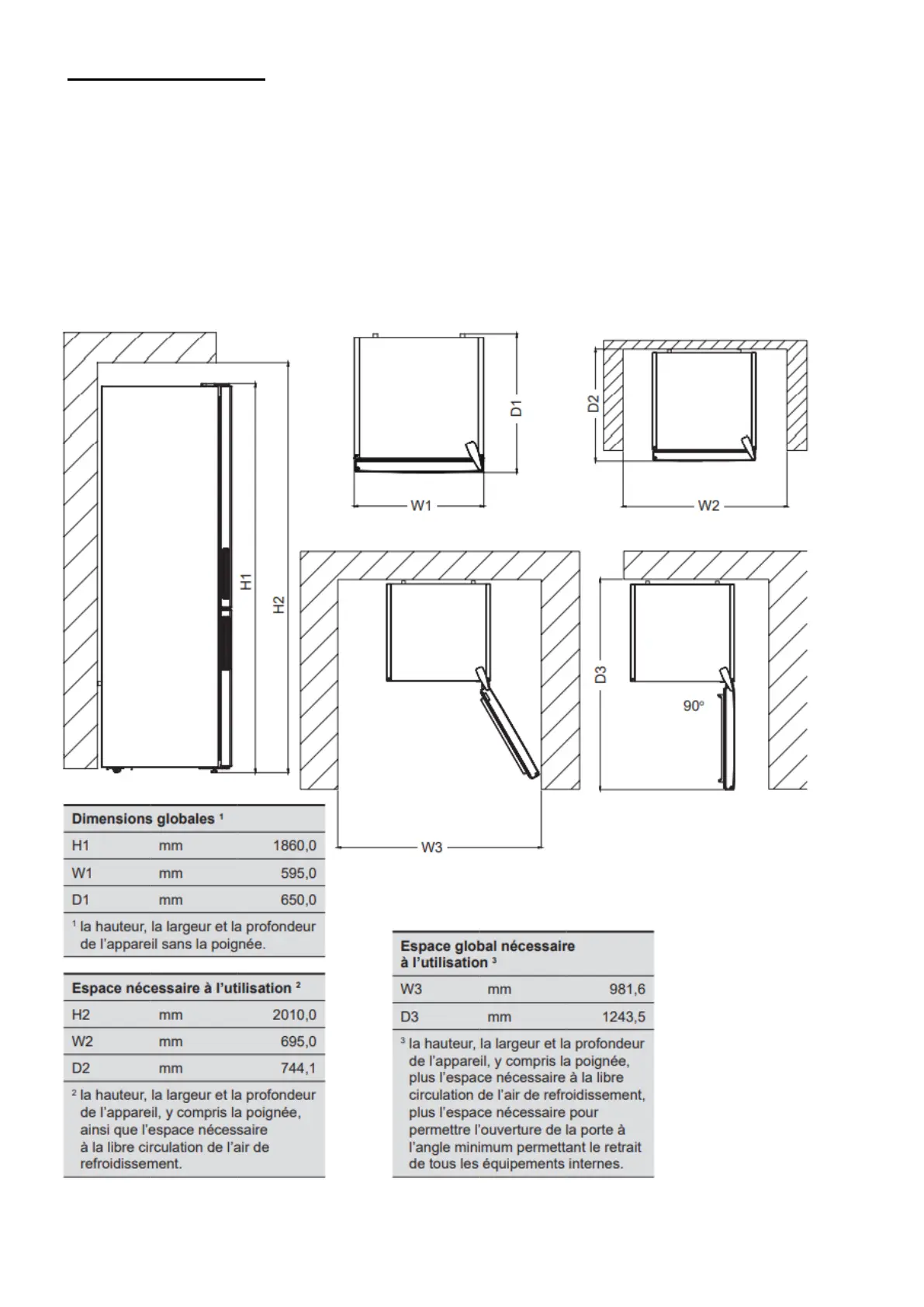 • Sélectionnez un endroit suffisamment grand pour que les portes du réfrigérateur puissent