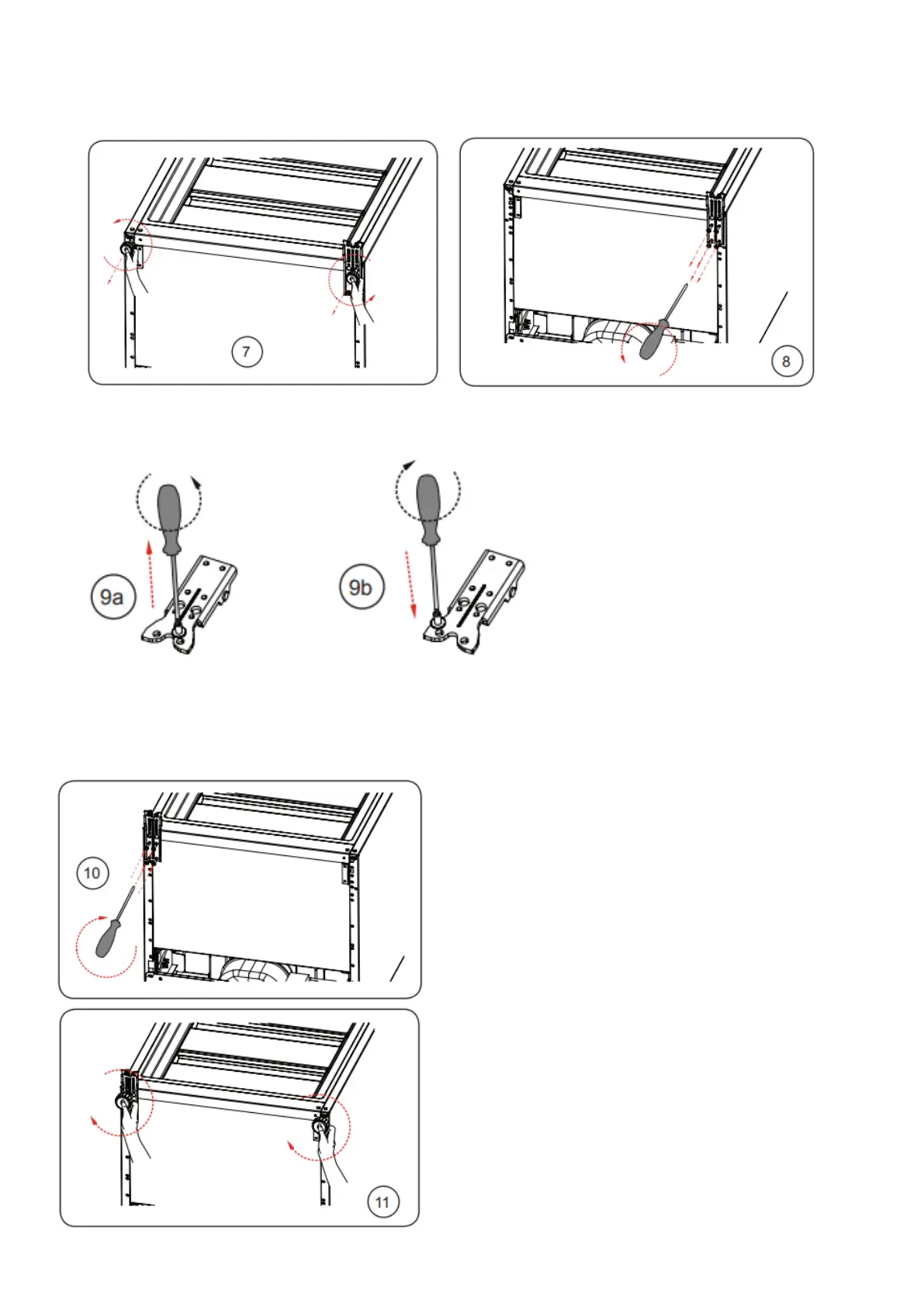 5. Ajustez la position centrale des charnières inférieure et supérieure de l’autre côté.