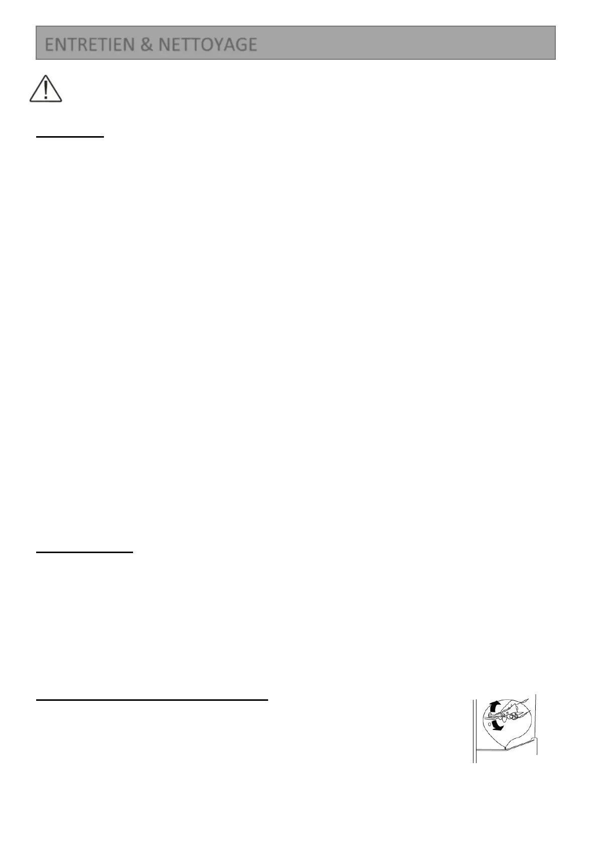 Avertissement ! Avant toute opération d'entretien, débranchez votre appareil. Ne