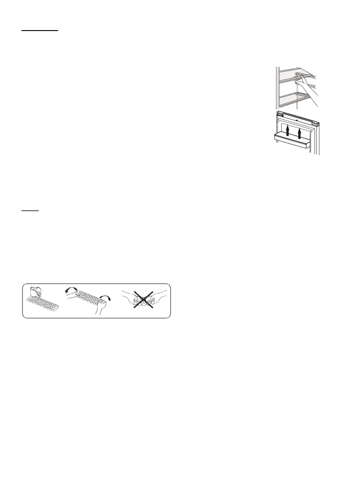 Note: Do not put food that you want to freeze or ice cube trays in the refrigerator compartment.