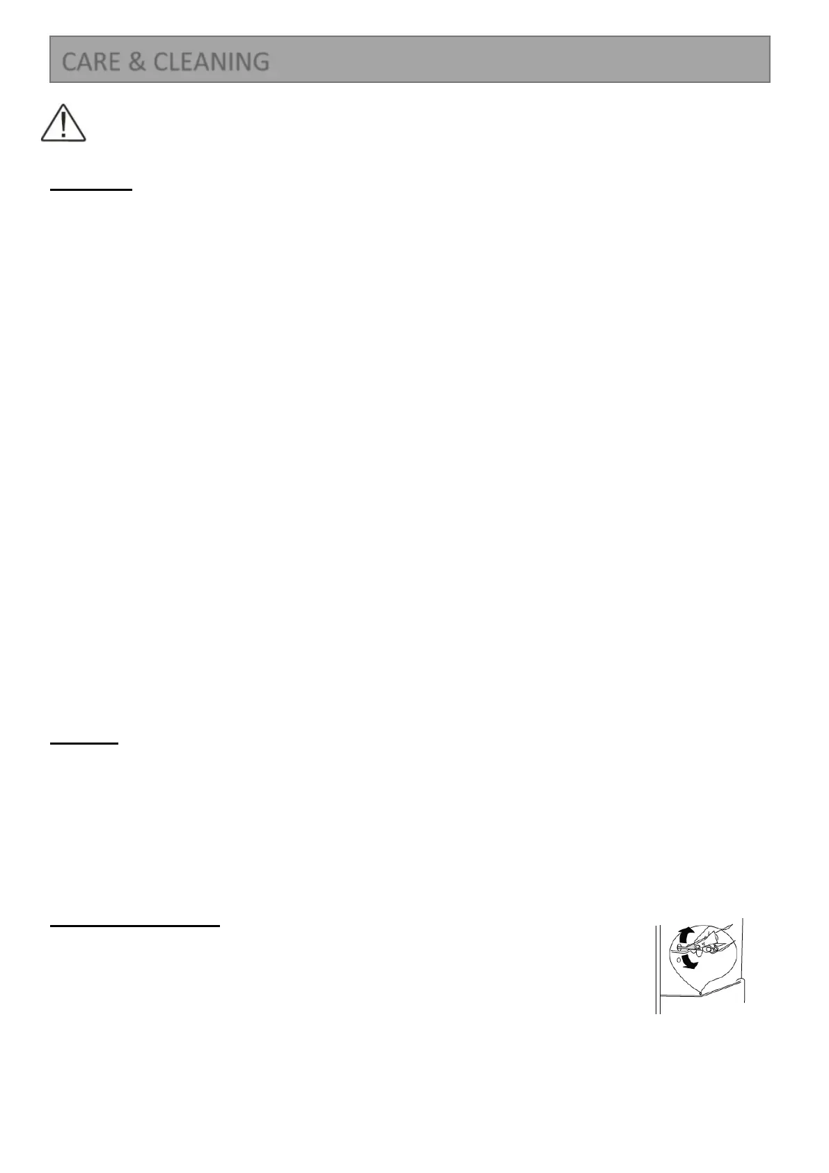• The appliance must be cleaned regularly with a solution of bicarbonate of soda and warm