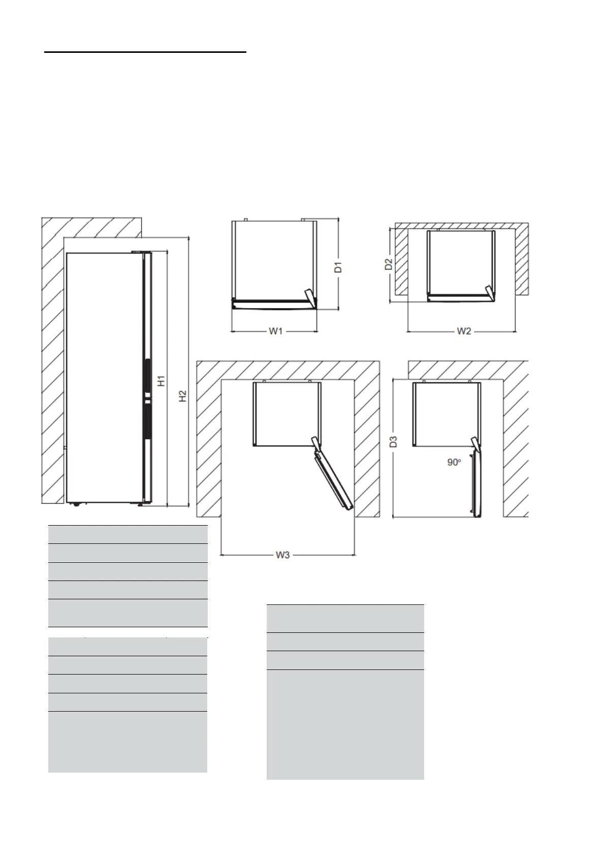 • Επιλέξτε μια θέση αρκετά μεγάλη ώστε οι πόρτες του ψυγείου να ανοίγουν εύκολα.