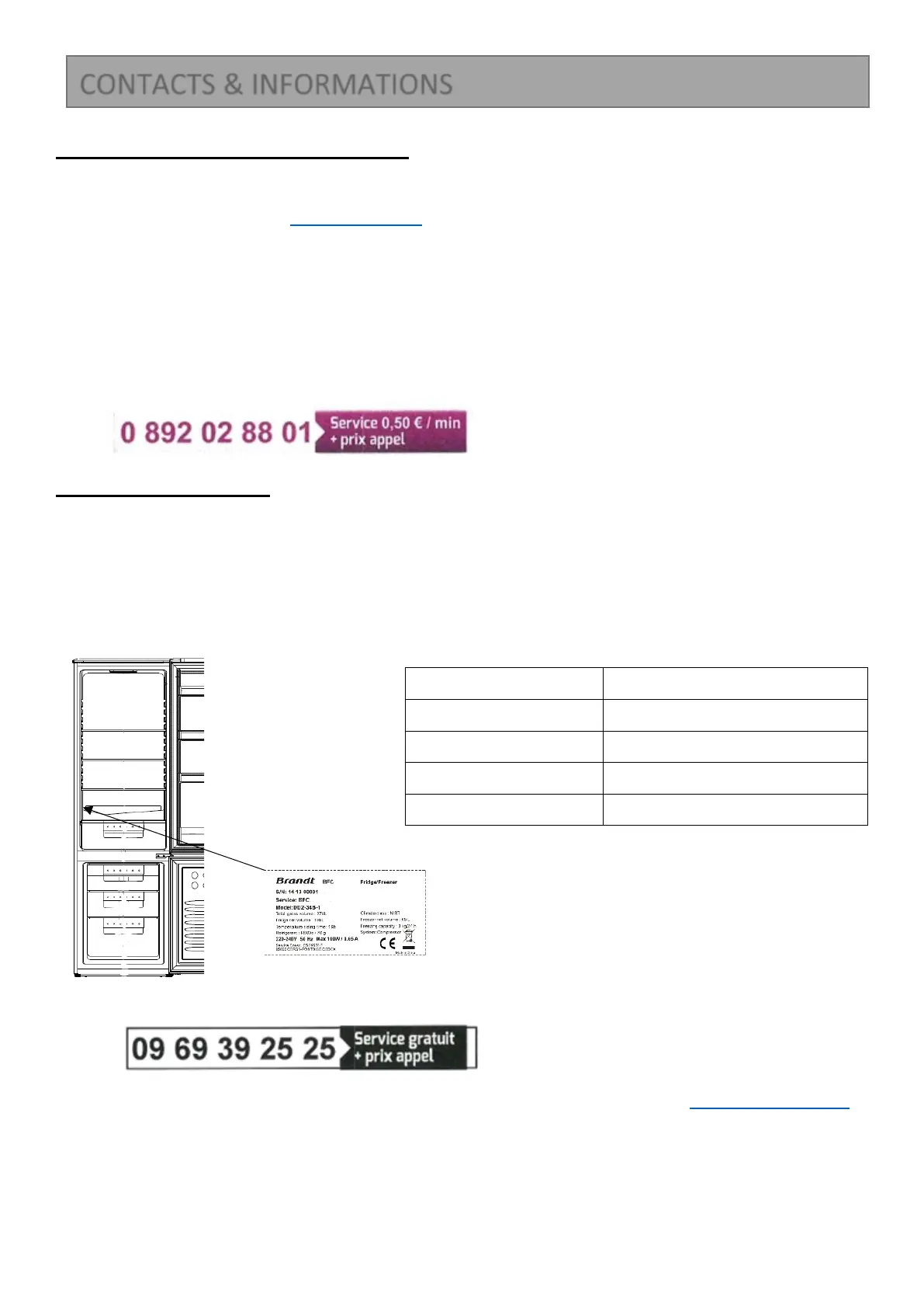 Lors de votre appel, mentionnez la référence complète de votre appareil (modèle, type, numéro