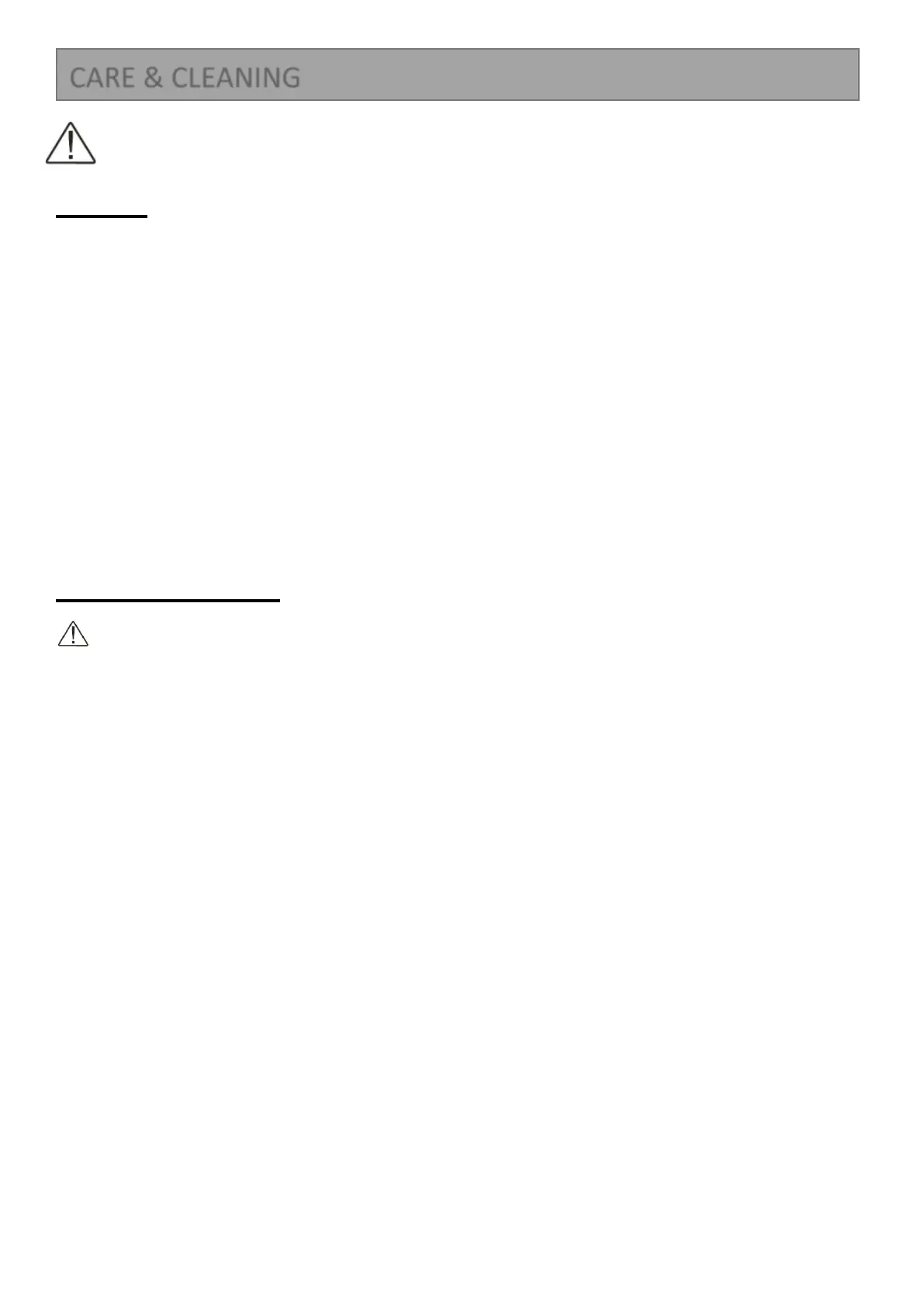 • Clean the appliance and the interior accessories with a cloth and lukewarm water with a diluted