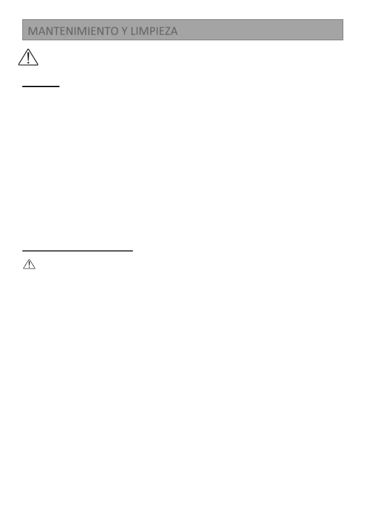 ¡Atención! Antes de cualquier tarea de mantenimiento, desconecte el aparato. No tire