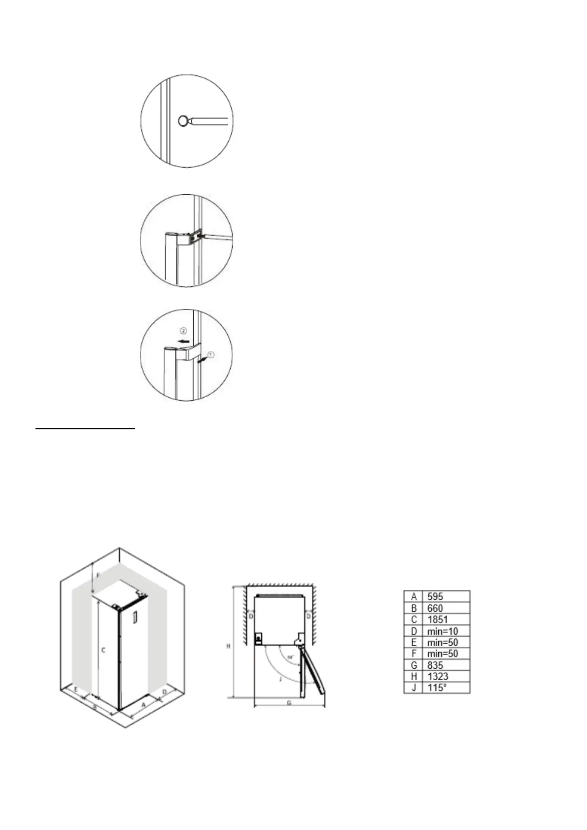 • Allow a safety distance to the right (D), to the left (D), to the rear (E) and above (F) the