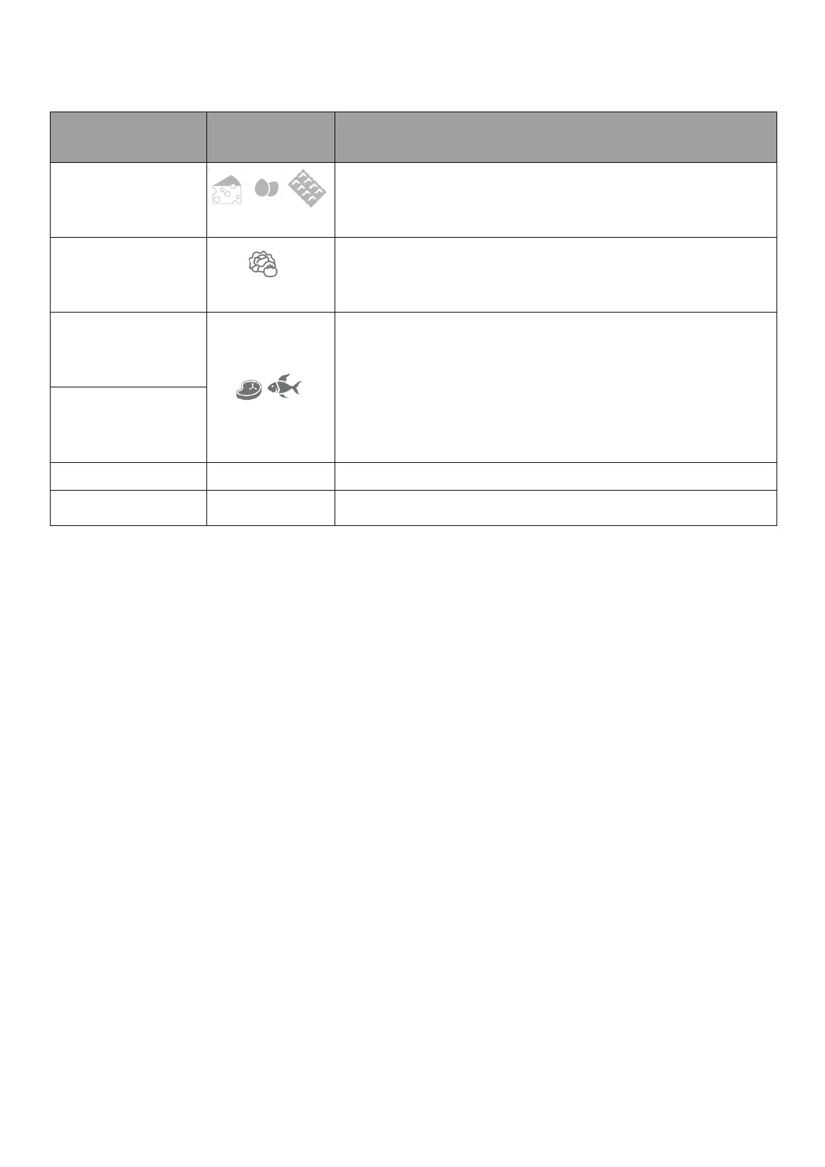 • Guarde los alimentos en los lugares recomendados en las siguientes tablas.