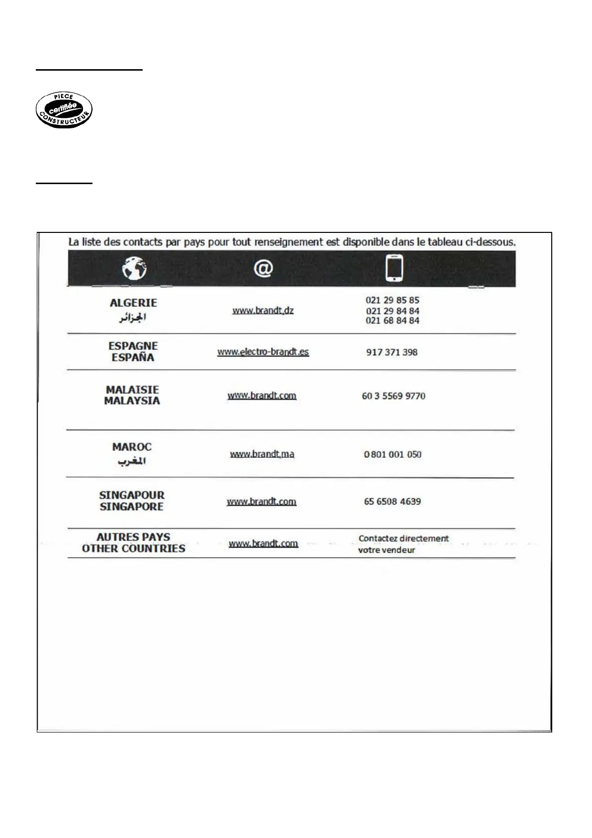 Veuillez-vous rapprocher de votre revendeur pour bénéficier de la garantie. Le fabricant n’offre pas