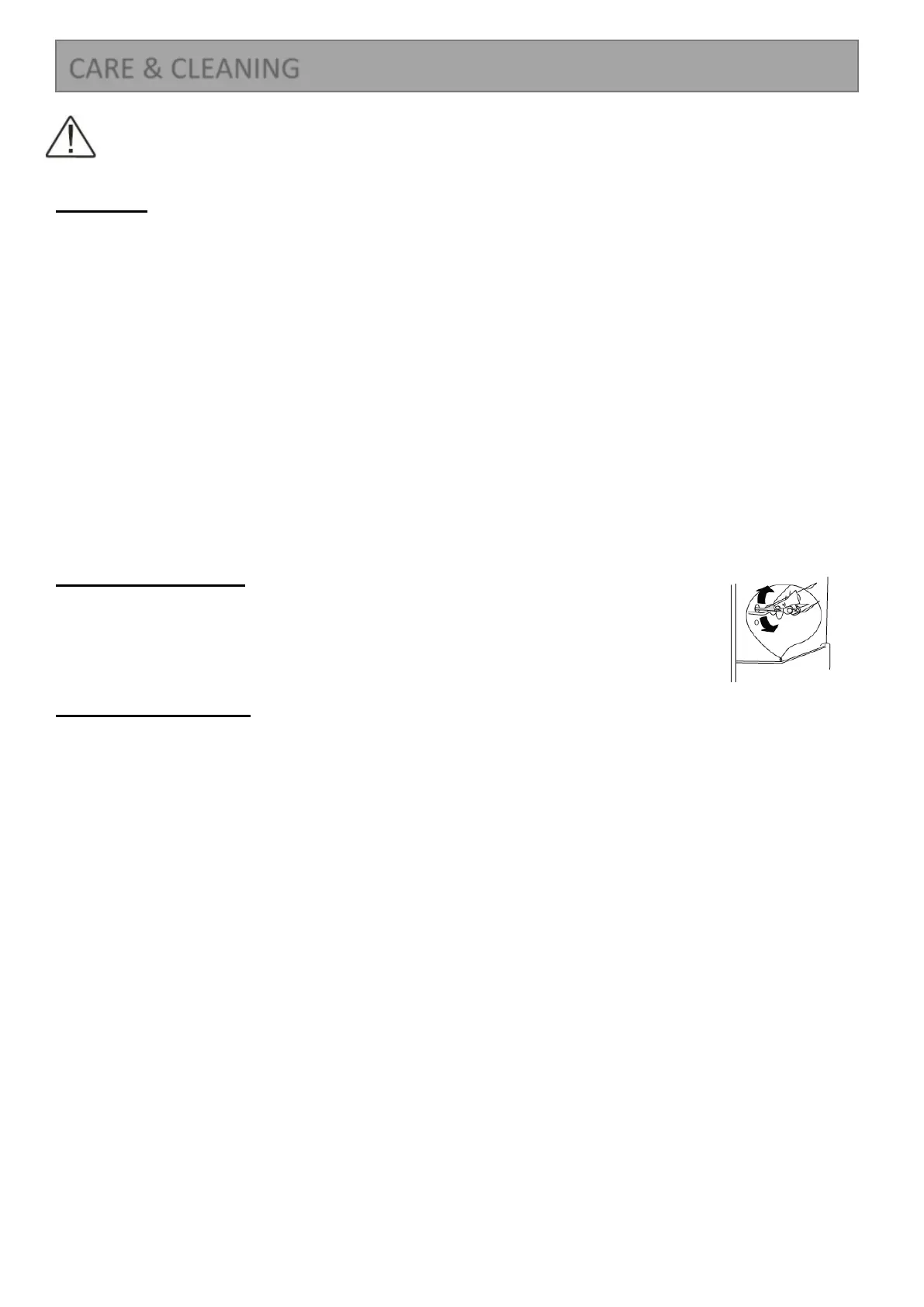 • Clean the appliance and the interior accessories with a cloth and lukewarm water with a diluted