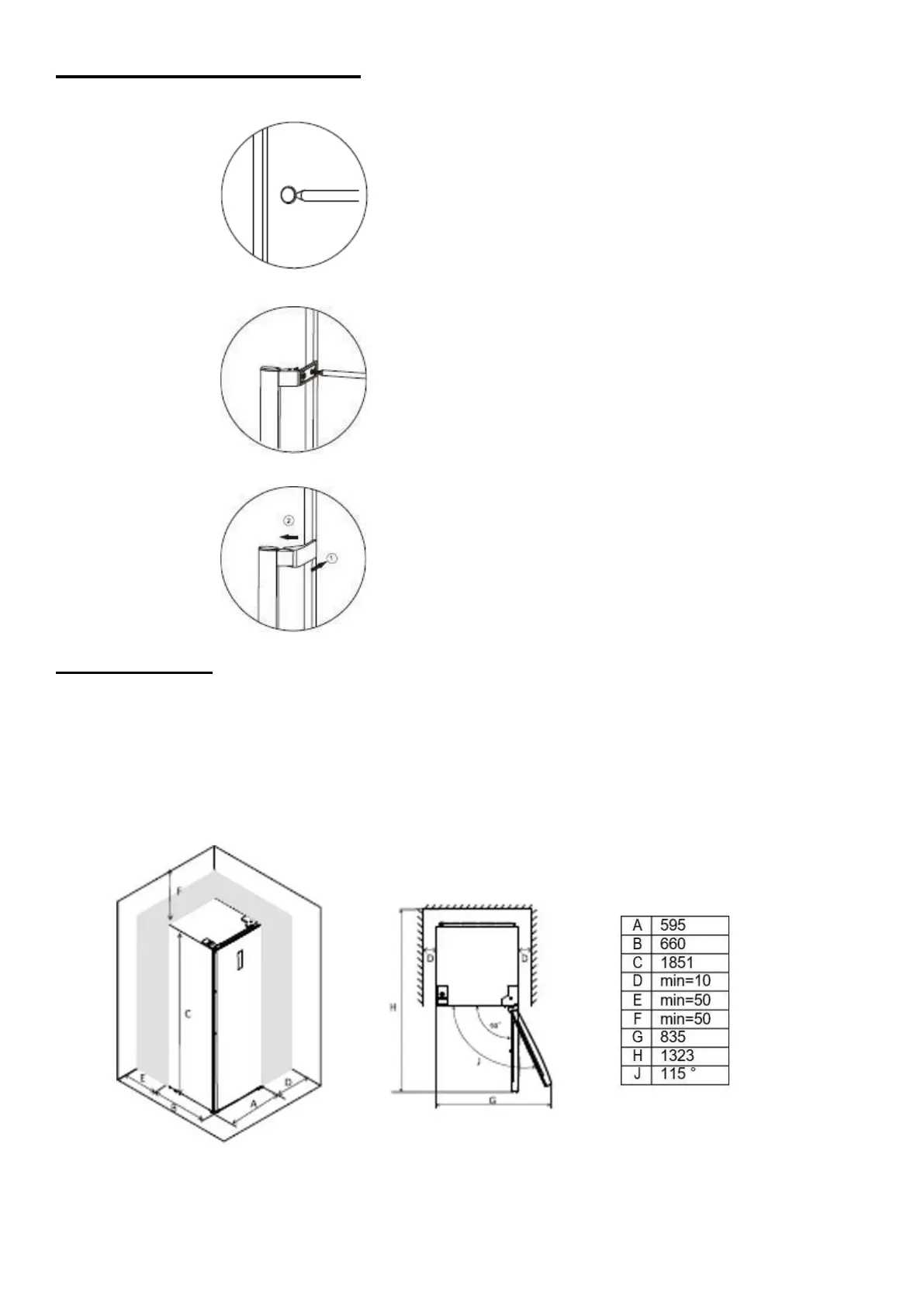 • Allow a safety distance to the right (D), to the left (D), to the rear (E) and above (F) the