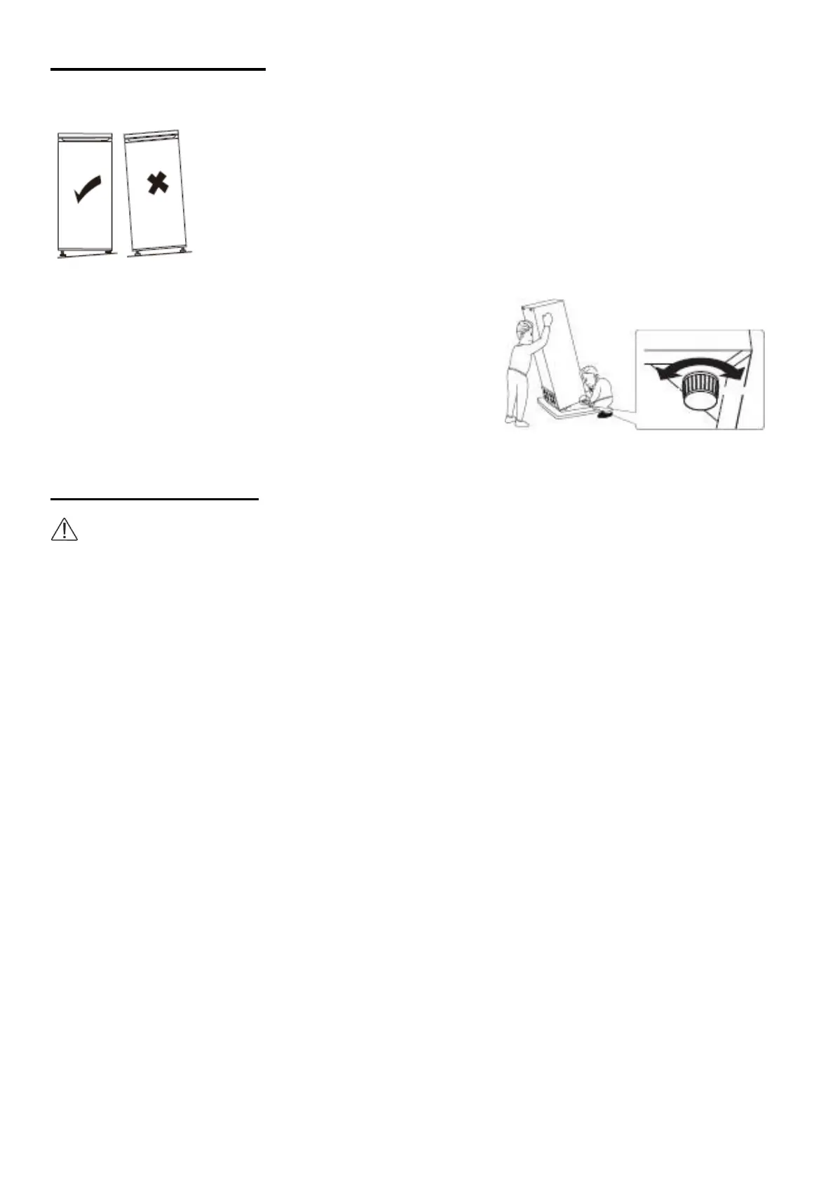 Once the appliance is installed, ensure that it is slightly inclined rearwards. In