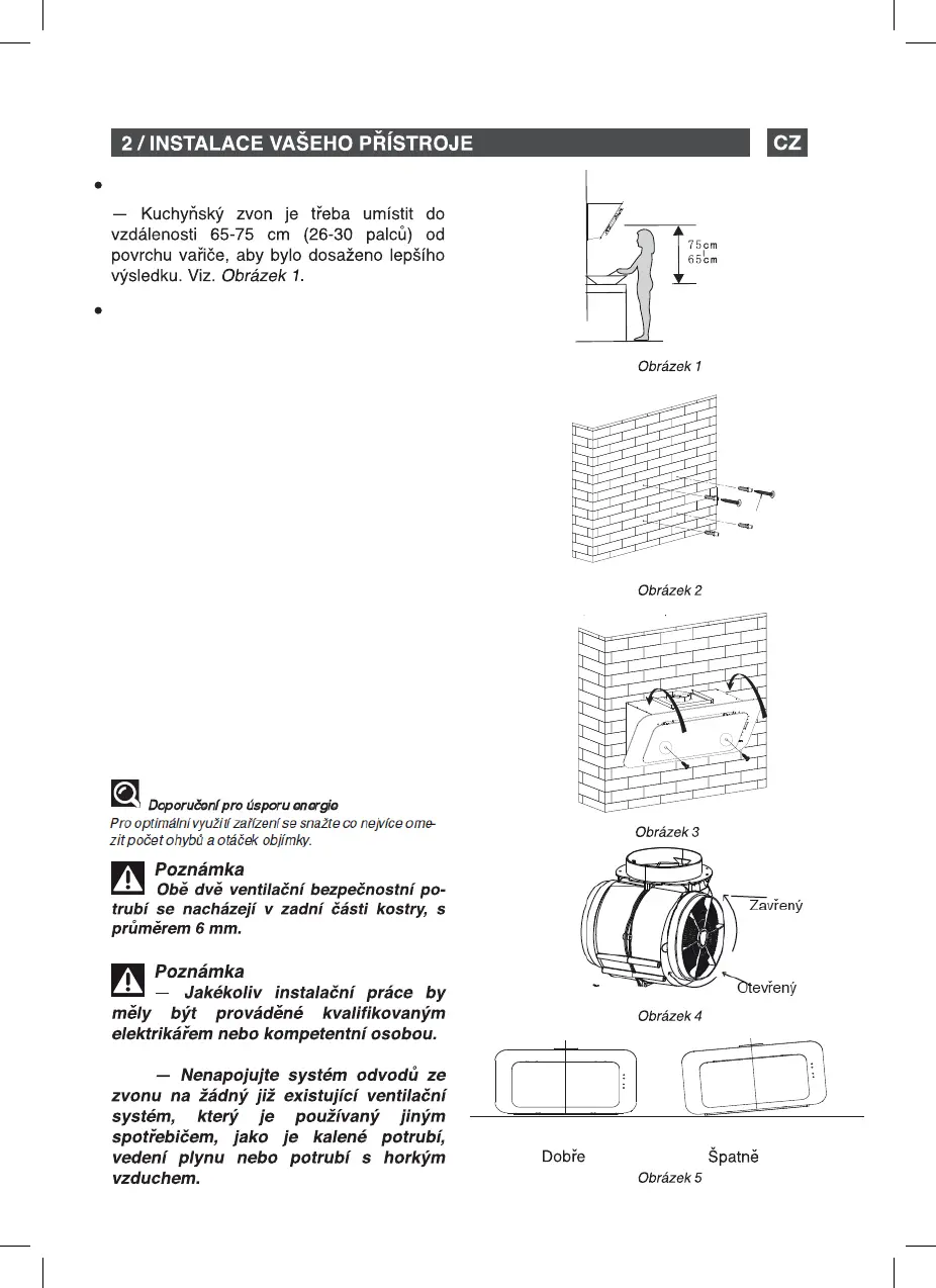 3. Zavěste digestoř na nosné šrouby. Vložte