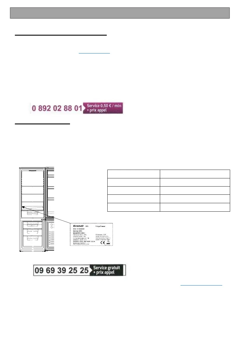 Lors de votre appel, mentionnez la référence complète de votre appareil (modèle, type, numéro