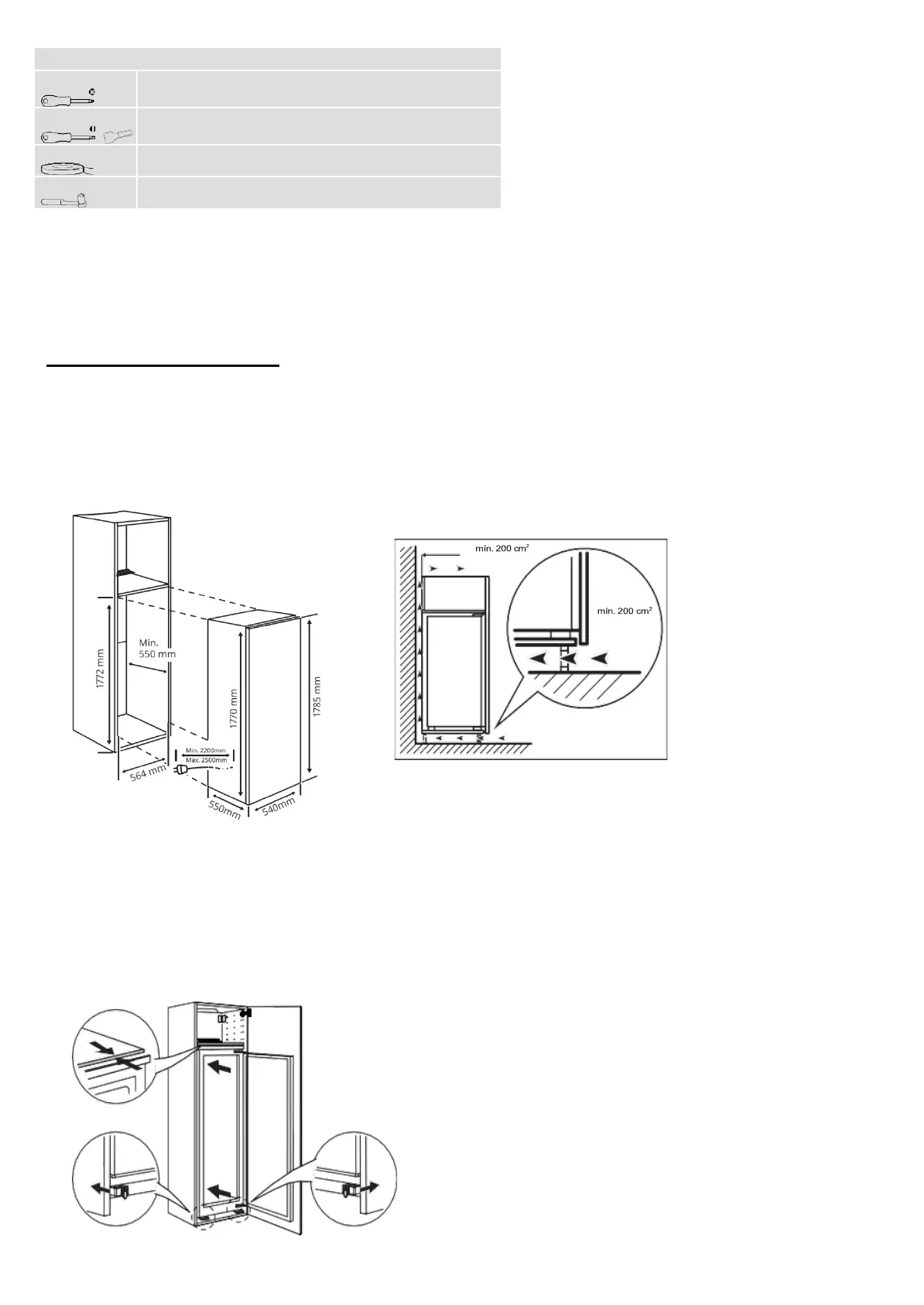 1.Tamaño del armario (el zócalo y la parte trasera del armario deben tener un canal de disipación de