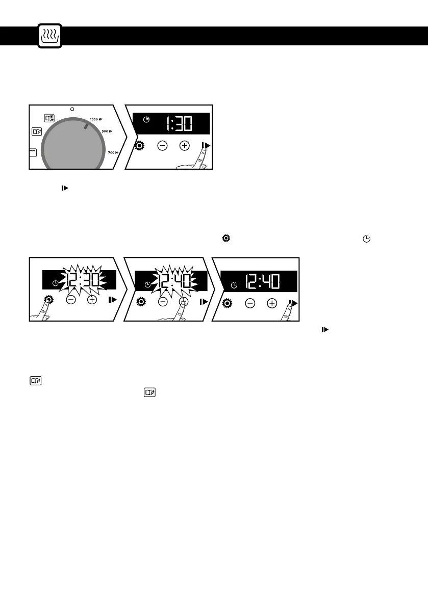Du kan ændre sluttidspunktet for tilberedning med tasterne + og -. Bekræft med