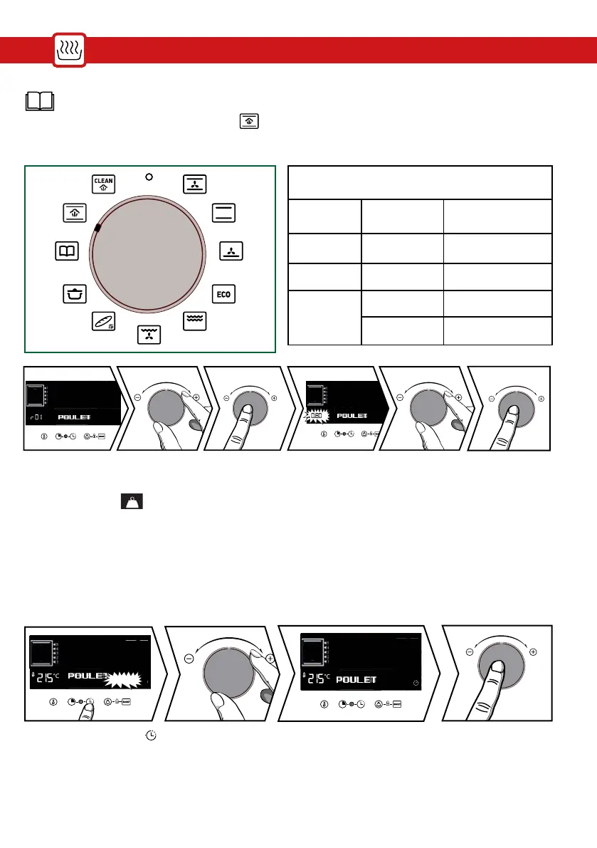 Réglez la nouvelle heure de n de cuisson avec la manette + et -. Validez en appuyant sur la manette.