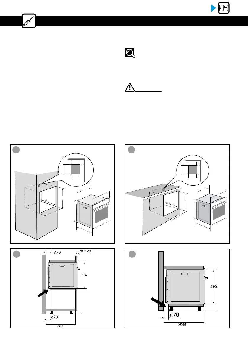 l’arrière (C et D). Fixez le four dans le meuble.