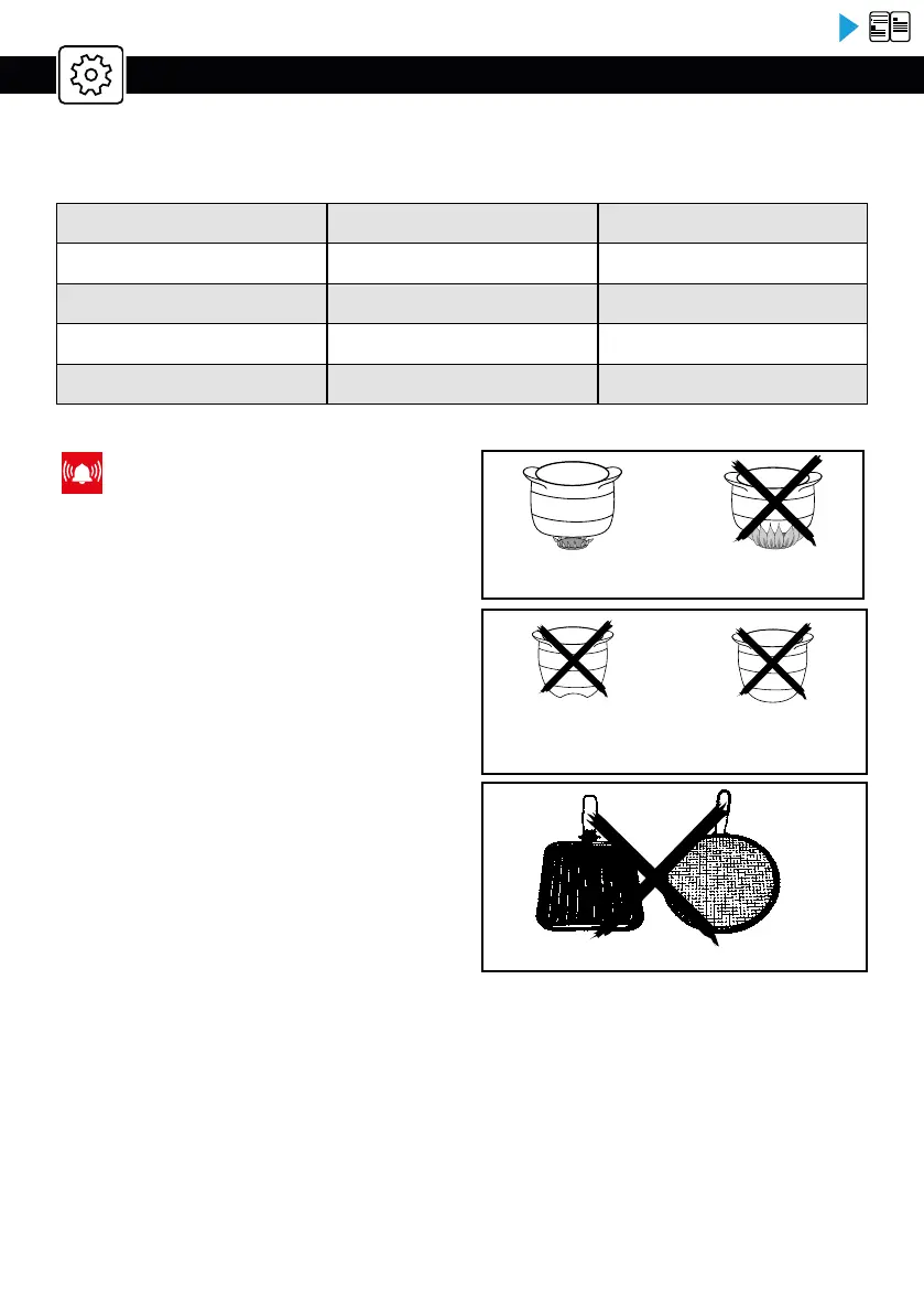 — Não utilize recipientes com fundo côncavo ou