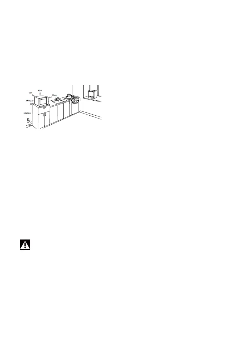 Laissez au moins 30 cm d’espace libre au-dessus du four et 20 cm sur les cotés (Fig 1).