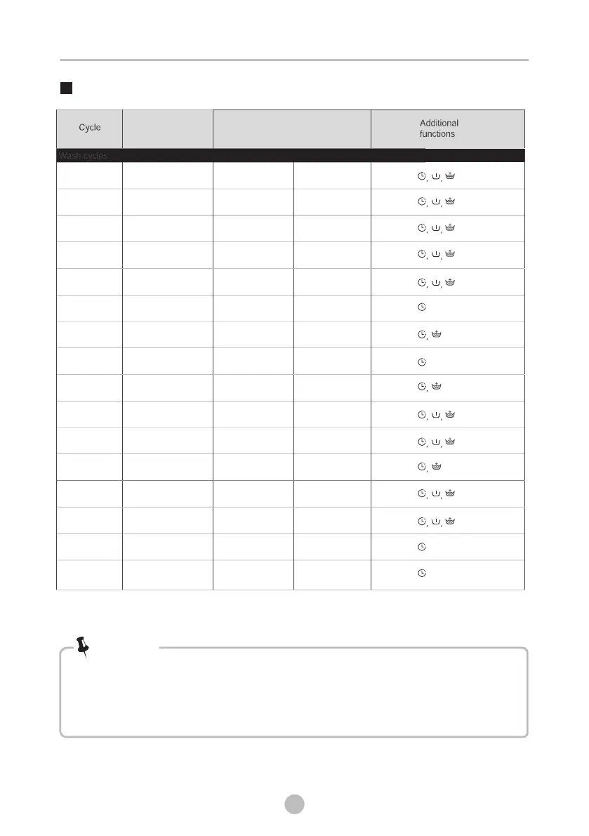 • The table shows which cycle offers which options for adjustment. If an