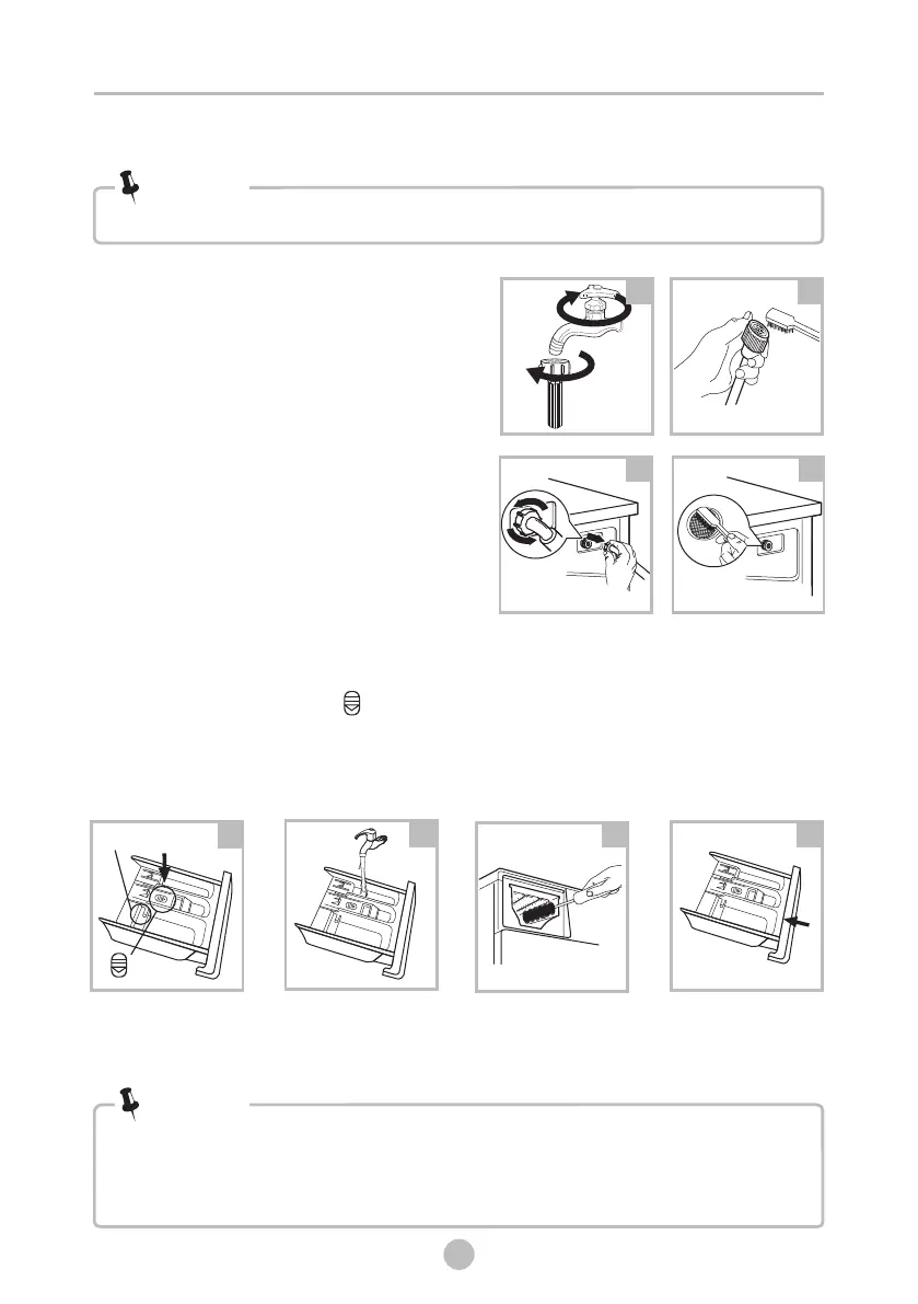 • Clean the detergent dispenser every 3 months to ensure the normal operation of the