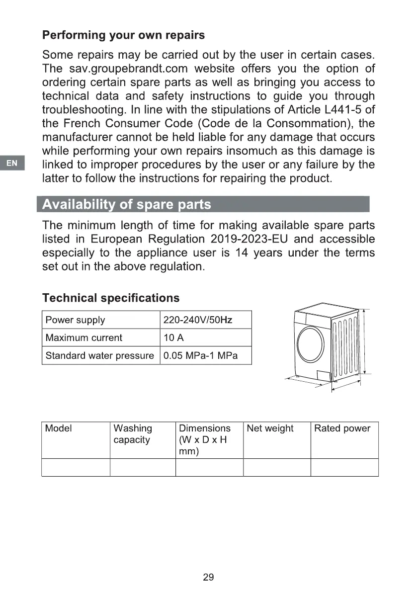 Bekijk gratis de handleiding van Brandt WFB394QW, stel vragen en lees de antwoorden op veelvoorkomende problemen, of gebruik onze assistent om sneller informatie in de handleiding te vinden of uitleg te krijgen over specifieke functies.