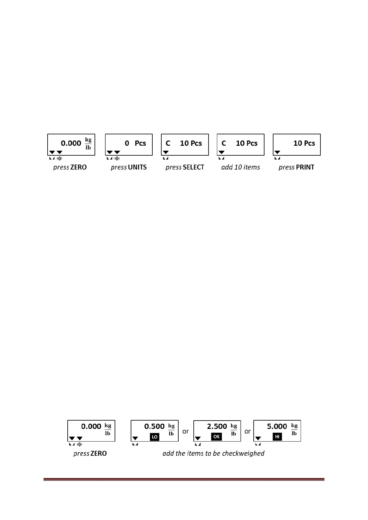 Checkweighing can also be done while using a tare. After you have zeroed the scale (step 2), place