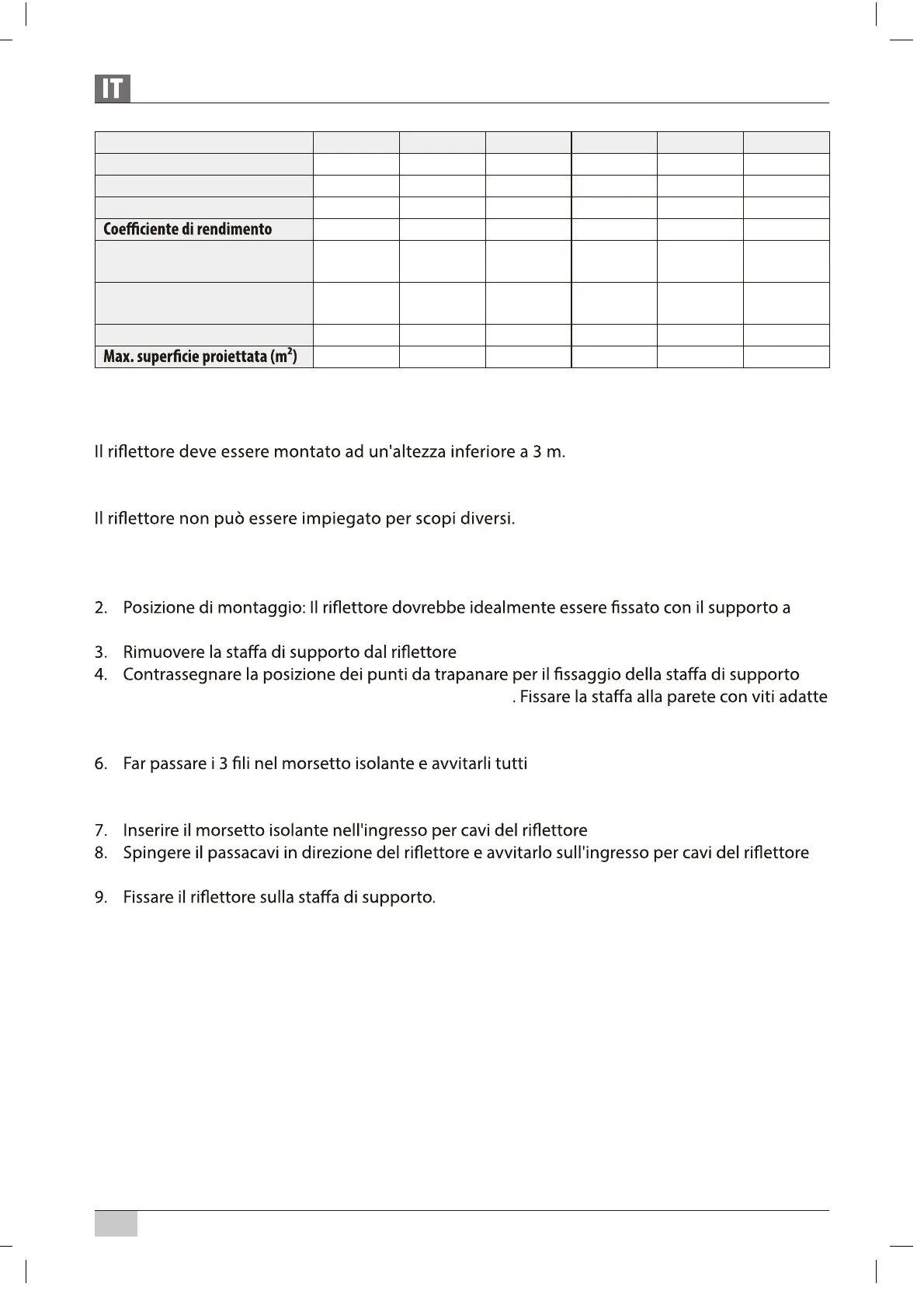 MONTAGGIO E COLLEGAMENTO ALL'ALIMENTAZIONE DI CORRENTE