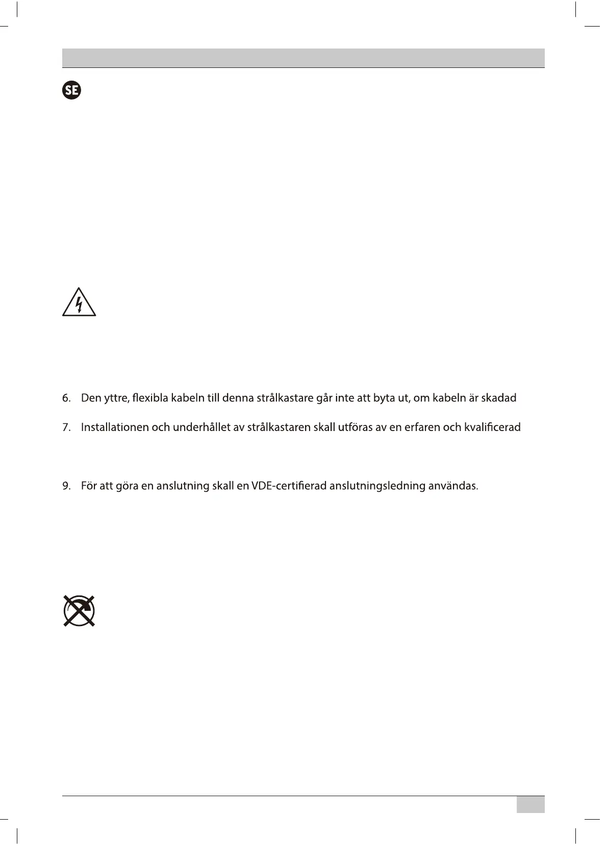 5. Det är inte möjligt att byta ut ett förstört skyddshölje. Strålkastaren måste kasseras.