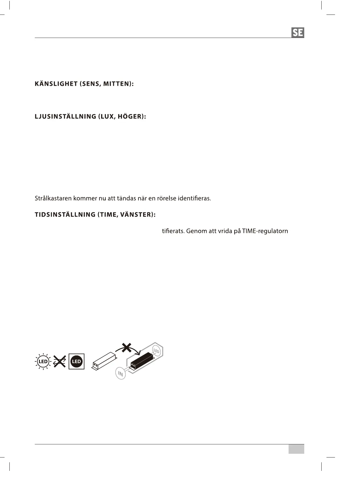 tidssensorn TIME på minimal tid (10 sek). Vrid ljusinställningsregulatorn helt till symbolen